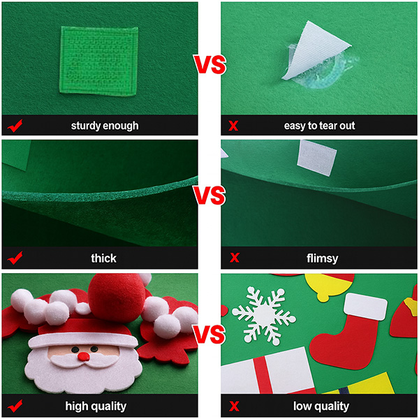 Visokokakovosten filc je trpežen, zato ga lahko uporabljate več let. Uživajte v času okraševanja z otroki.