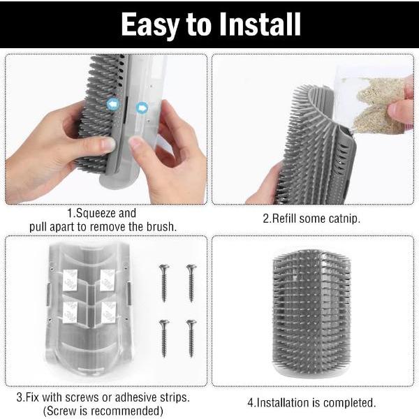 Mačke bodo morda potrebovale nekaj časa, da se prilagodijo tem krtačam za vogale, njihovo zanimanje pa lahko povečate tako, da jim dodate ščepec mačje mete (ni priložena).