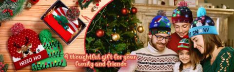 XBEANIE z oblikovanim vzorcem božičnega jelena in snežakov ter z LED lučkami, ki izpolnjujejo praznične potrebe in lepo modo.