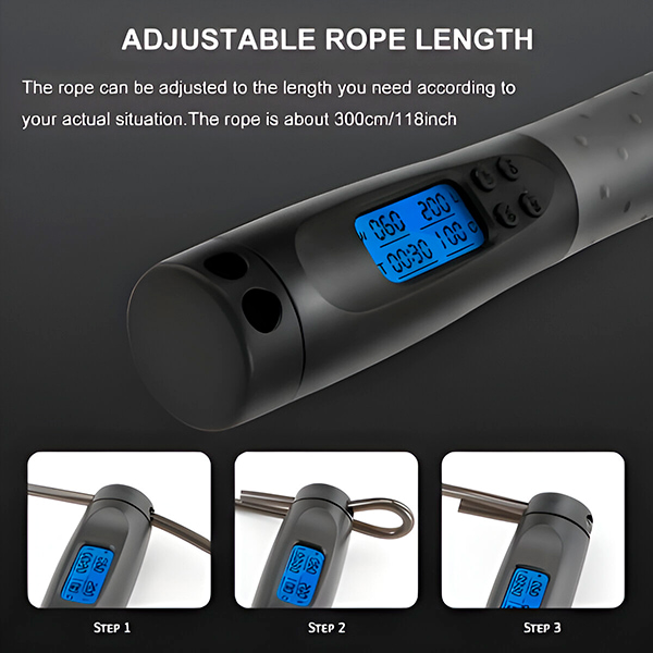 Z digitalnim zaslonom lahko takoj vidite porabljene kalorije, število skokov in ostanete motivirani pri vsaki vadbi.