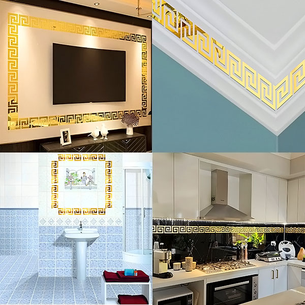 Kopalnica: Polepšajte videz kopalnice z nalepkami na stenah ali okoli ogledal, ki odbijajo svetlobo in ustvarjajo občutek večjega, razkošnejšega prostora.
