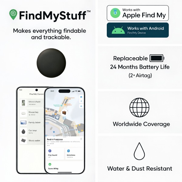 📱 Združljivost z Apple & Android “Find My”