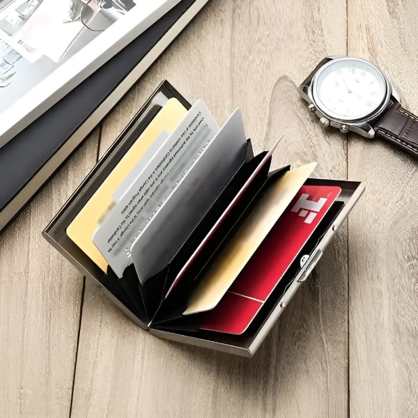 Ta denarnica, izdelana iz visokokakovostnega nerjavečega jekla, je trpežnejša in trajnejša od plastičnih ali aluminijastih možnosti ter zagotavlja vrhunsko zaščito vaših kartic.