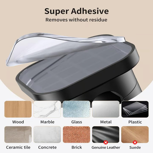 Trdno se pritrdi na ravne površine, kot so les, ploščice, kovina in gladke stene.