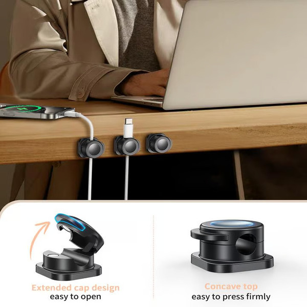 Ohranja vaše polnilne kable urejene in preprečuje, da bi padli z mize.