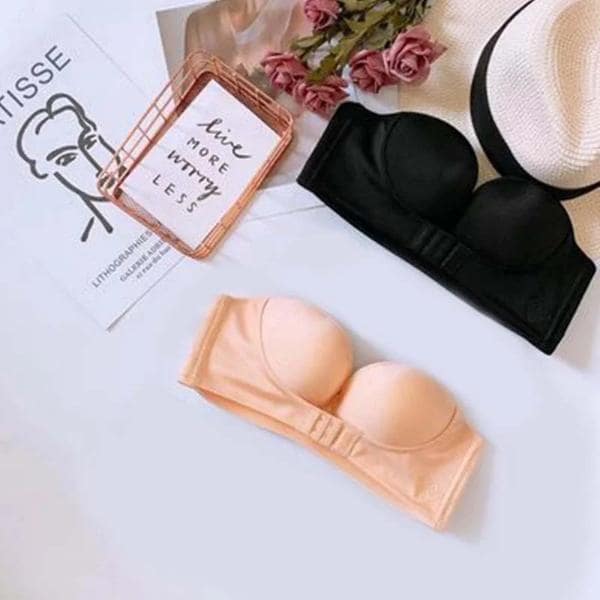 Povsem neopazen modrček, primeren za nošenje pod katerokoli obleko ali bluzo! Paket vsebuje 1 x črn in 1 x bež modrček brez naramnic.