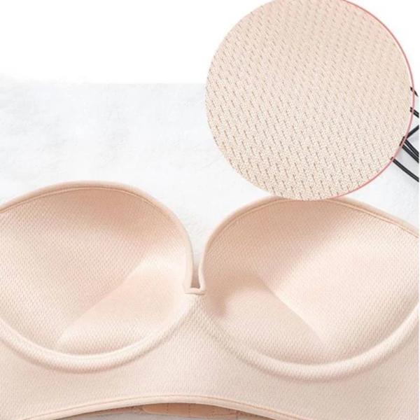 Silikonska podloga, ki se oprime kože, zagotavlja, da modrček ostane varno na mestu, ne da bi zdrsnil.