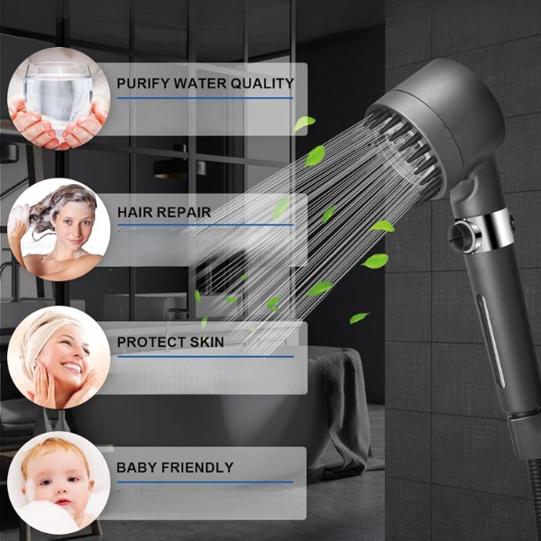 Priložena 2 visokokakovostna filtra zmanjšujeta težke kovine, klor in nečistoče, ter poskrbita, da bo vaša koža ob vsakem tuširanju mehka, lasje pa zdravi.
